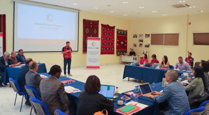 كما حضر الفريق جلسة توعية نظمها الهلال الأحمر الأردني مع أعضاء لجنة مجتمعية محلية، هدفت إلى رفع مستوى الوعي بأهمية الحفاظ على المياه وتحسين السلوكيات المتعلقة باستخدامها، وذلك للتخفيف والتعامل مع أي توترات مجتمعية قد تنشأ بسبب ندرة المياه.